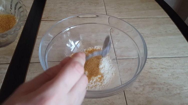 - In a bowl, pour 4 tbsp. l flour. Add 4 tbsp. l Sahara.