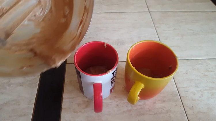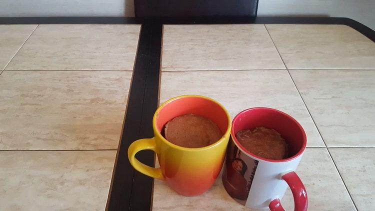 - Set the mugs in the microwave for 3 minutes. To get the finished cupcake out of the mug, cut it slightly along the edge with a knife.