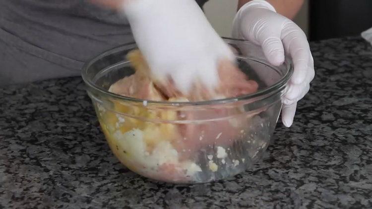 - Mix all the ingredients. Wet hands in cold water. We form cutlets.