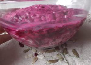 How to make a beautiful and delicious homemade beetroot salad with garlic and cheese. Secrets of making edible decor. How to put salad on a dish,