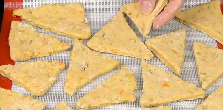 - Put the resulting pieces on a baking sheet previously covered with baking parchment. Place the baking sheet in an oven preheated to a temperature of 180 degrees for 25 to 30 minutes.