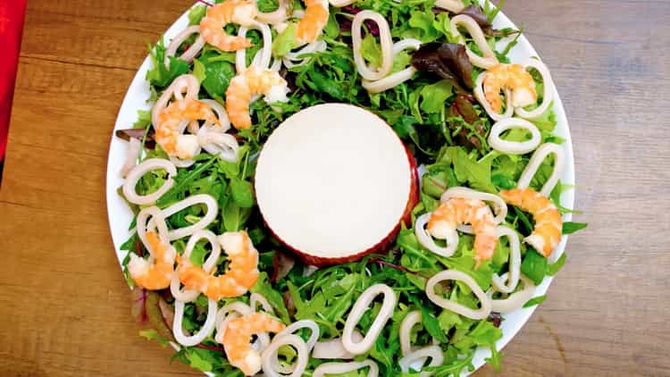 This video shows a step-by-step recipe for making shrimp and squid salad.