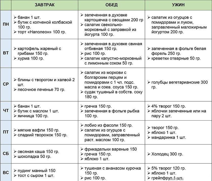 When forming a diet, follow the basic rules for choosing foods for each meal.