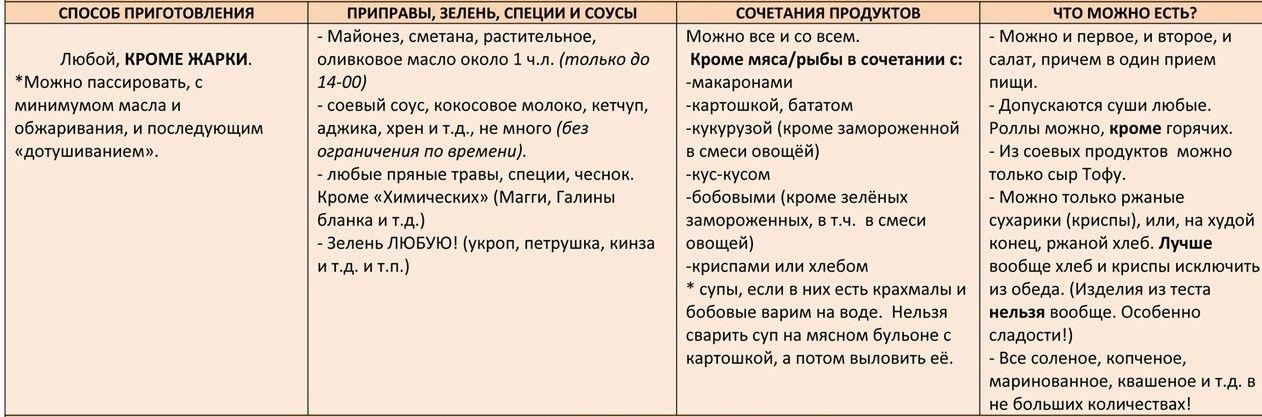 - How to combine products? Is it really possible to eat everything before twelve o'clock? Indeed, Ekaterina Mirimanova’s table of diet products “Minus 60” allows you to eat whatever you want at breakfast, including sweet dishes. For lunch, you can’t eat potatoes or pasta with meat together, but if you want to eat them, add cheese or vegetables to them. For dinner, eat either meat or fish, cottage cheese can be combined with fruits and vegetables, buckwheat too. During the day, do not make yourself snacks, and the serving size for each meal should be approximately the same.