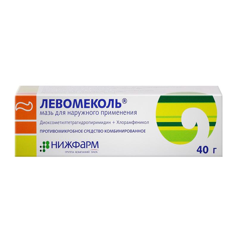 Antibacterial ointment with chloramphenicol and methyluracil in the composition. Effectively copes with infectious inflammation on the skin, and due to the content of methyluracil, it normalizes local immunity. Levomekol accelerates regeneration processes, improves trophism of the epidermis.